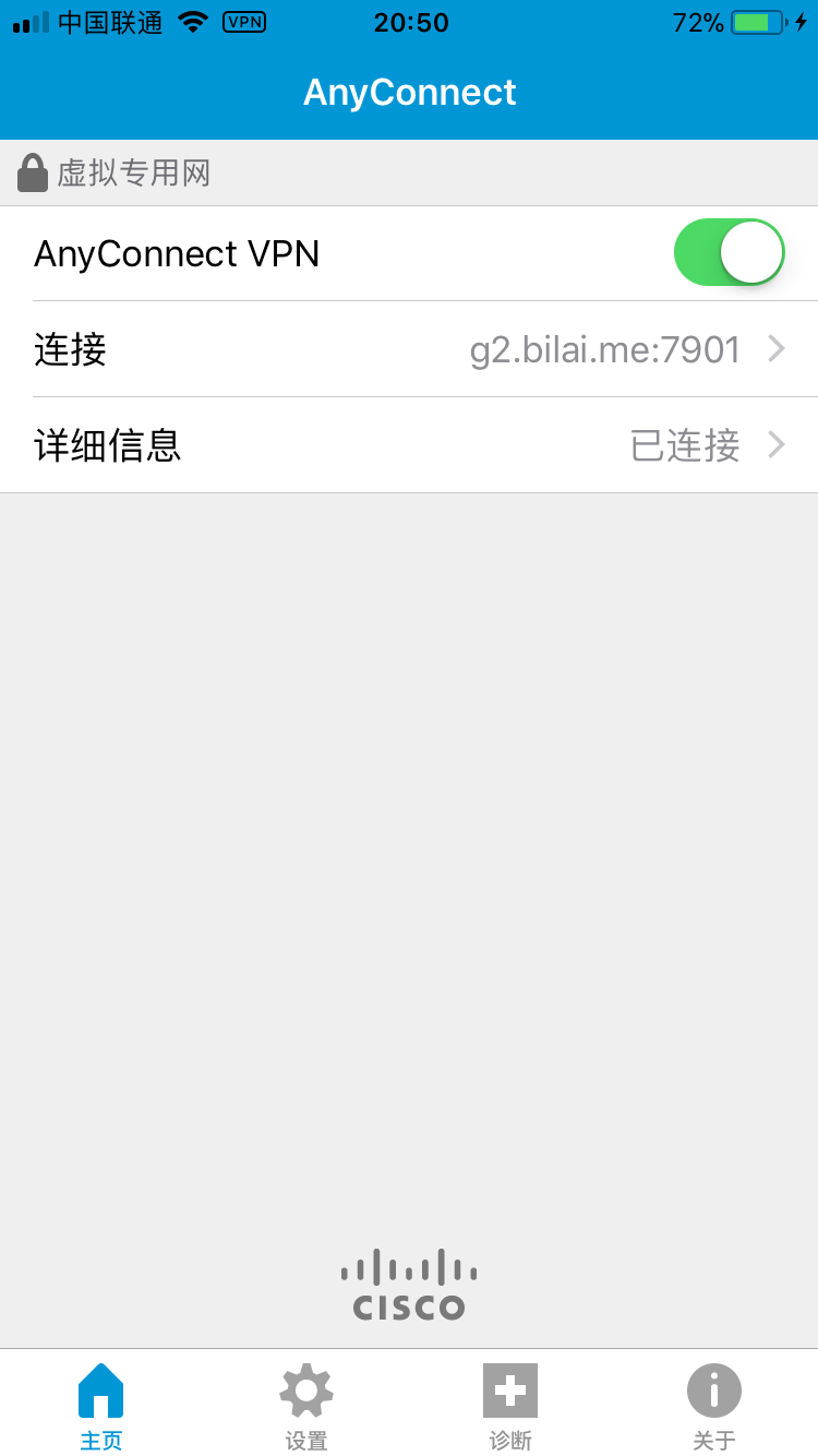1.打开手机上的Cisco anyconnect